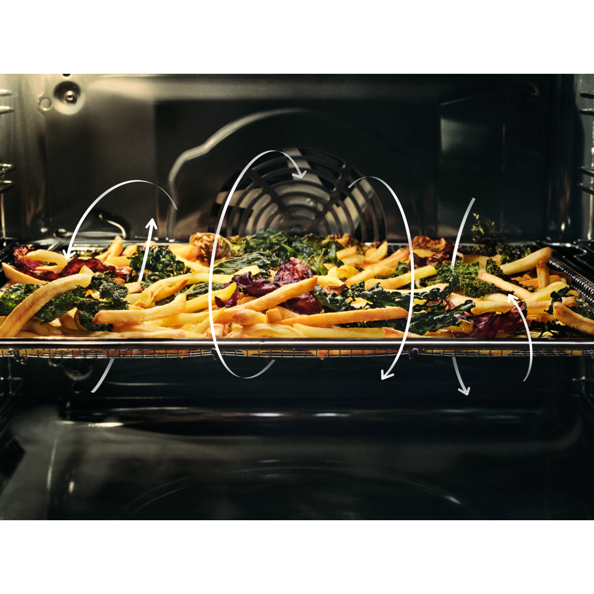 Genießen Sie knusprige Speisen wie Pommes, Gemüse oder Chicken Wings mit wenig bis keinem Öl. Die speziell entwickelte Gitter-Struktur sorgt für mehr Luftzirkulation und eine gleichmäßige Hitzeverteilung. Ein Wenden Ihrer Speisen ist nicht erforderlich.